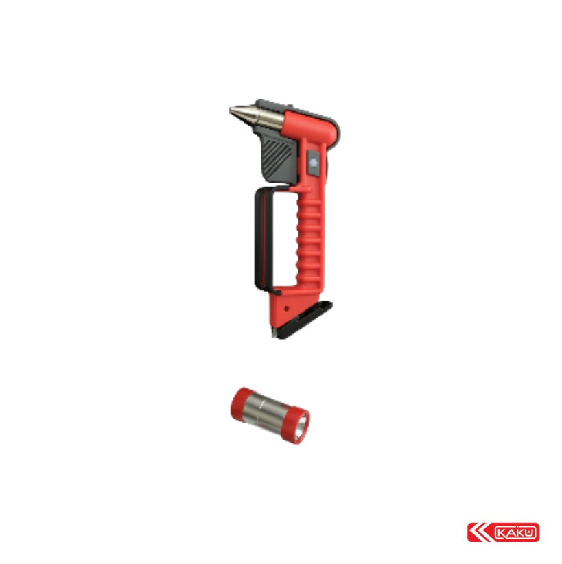 • Emergency hammer equipped with a toughened, high-impact metal tip for effective glass breaking.