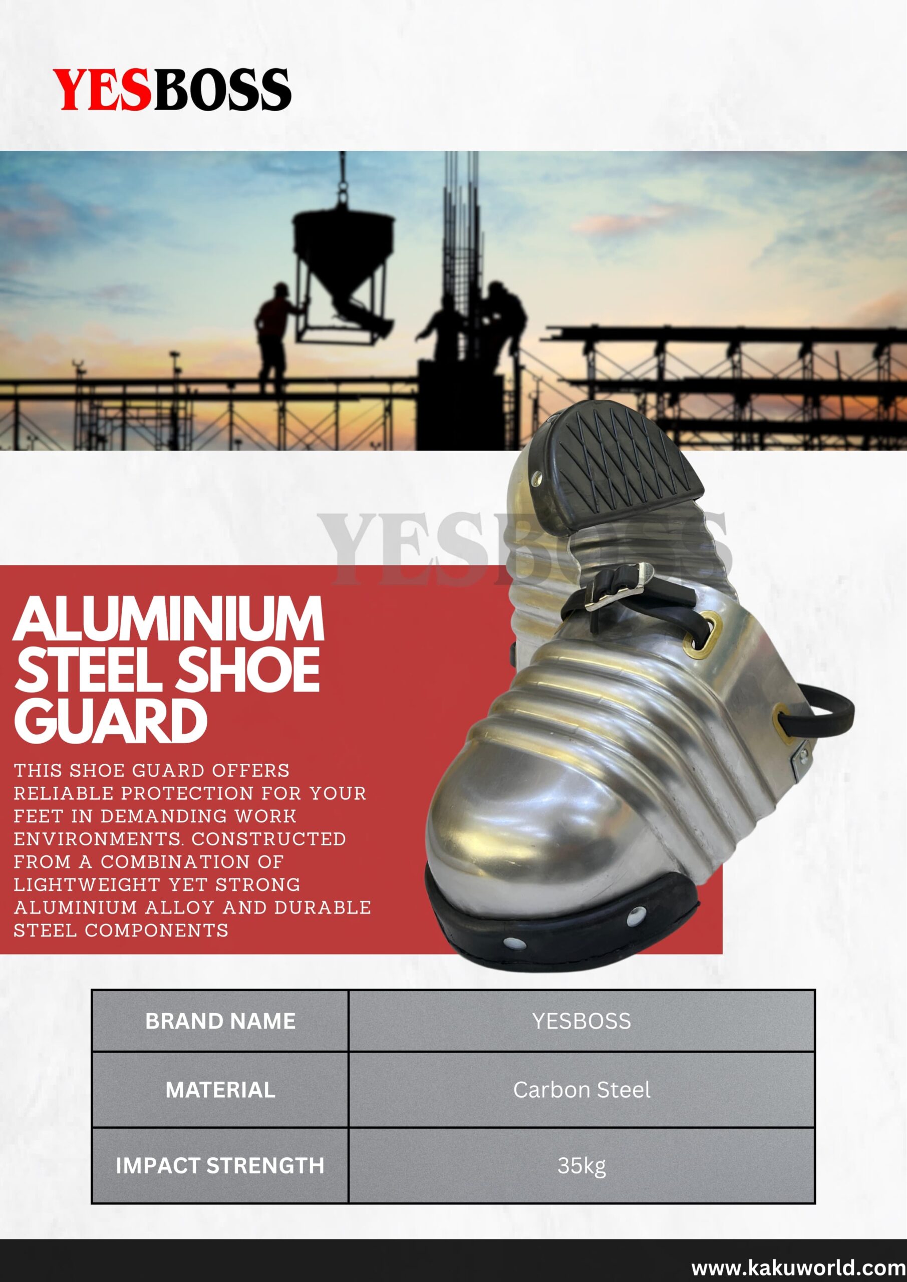 Shoe Guard Aluminium.This shoe guard offers reliable protection for your feet in demanding work environments. Constructed from a combination of lightweight yet strong aluminium alloy and durable steel components.