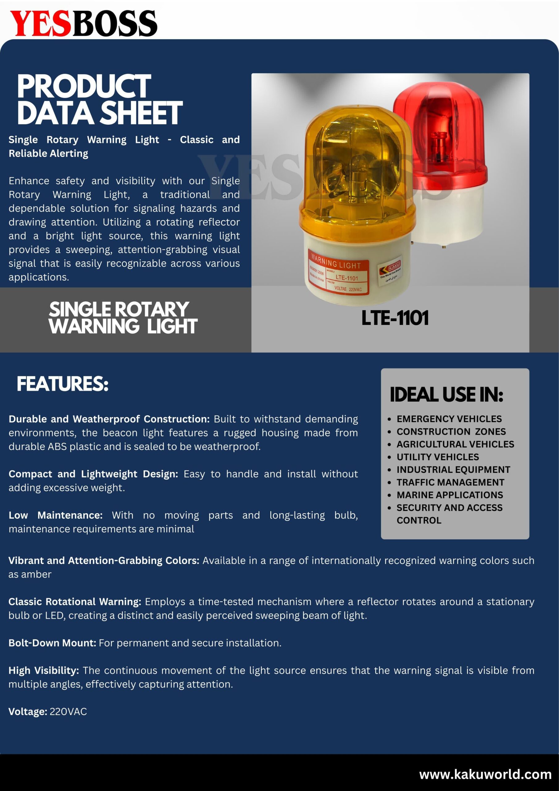 • High Visibility – Rotating light motion ensures visibility from multiple angles for maximum effectiveness.